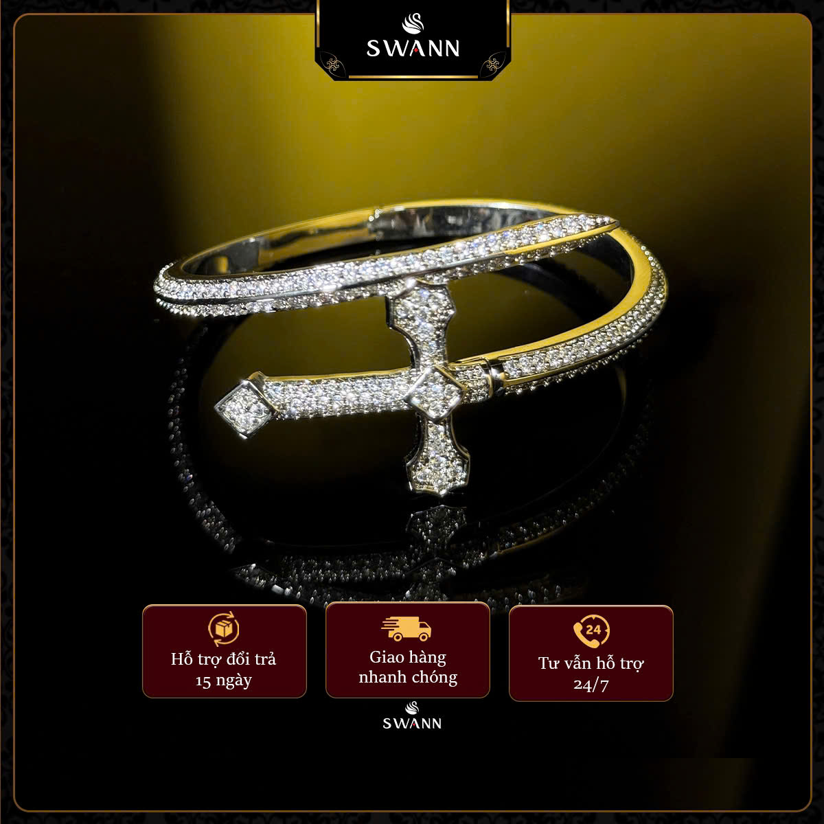 - Thay đá CZ, đá tổng hợp: Swann hỗ trợ thay miễn phí trong suốt thời hạn bảo hành 3 tháng kể từ ngày mua hàng.