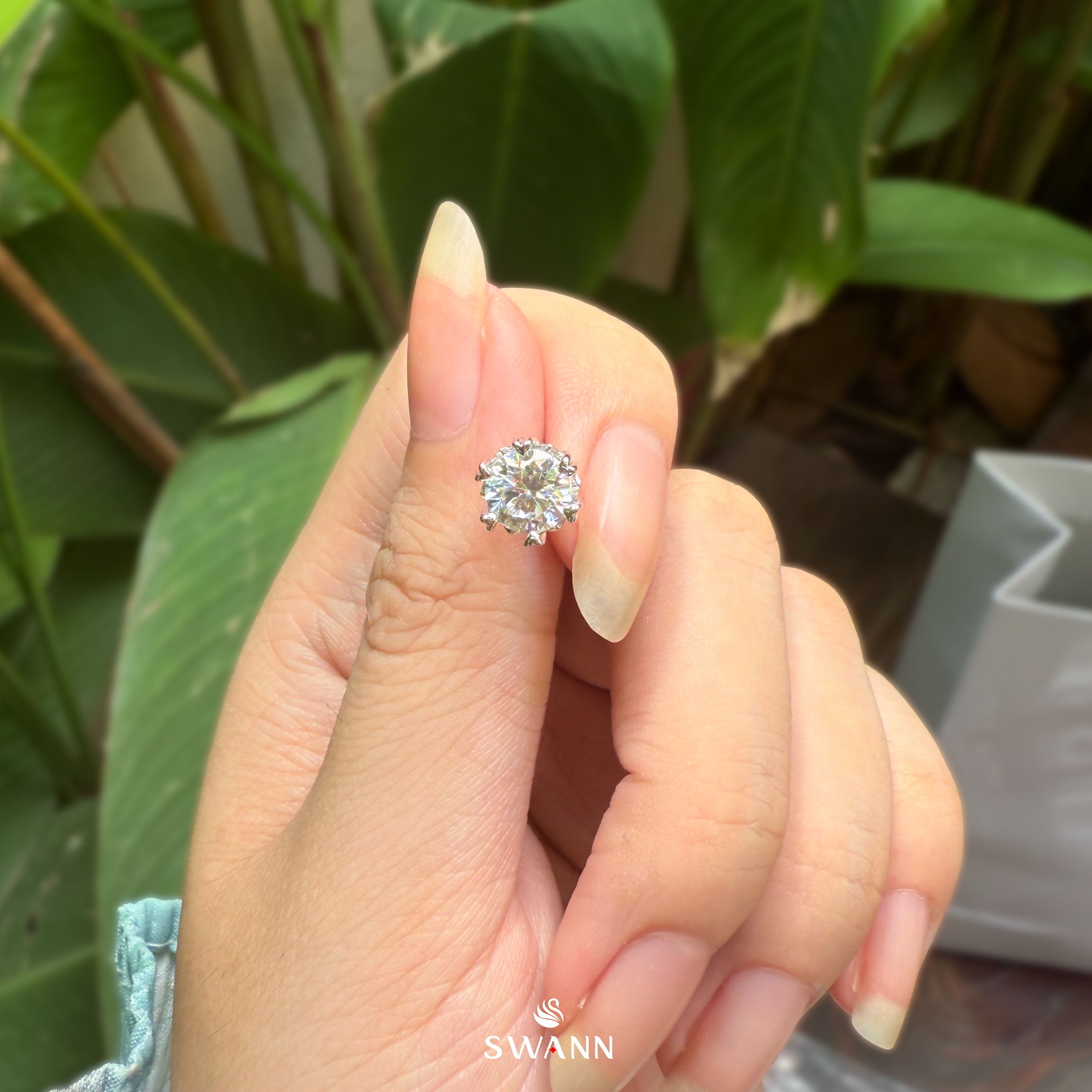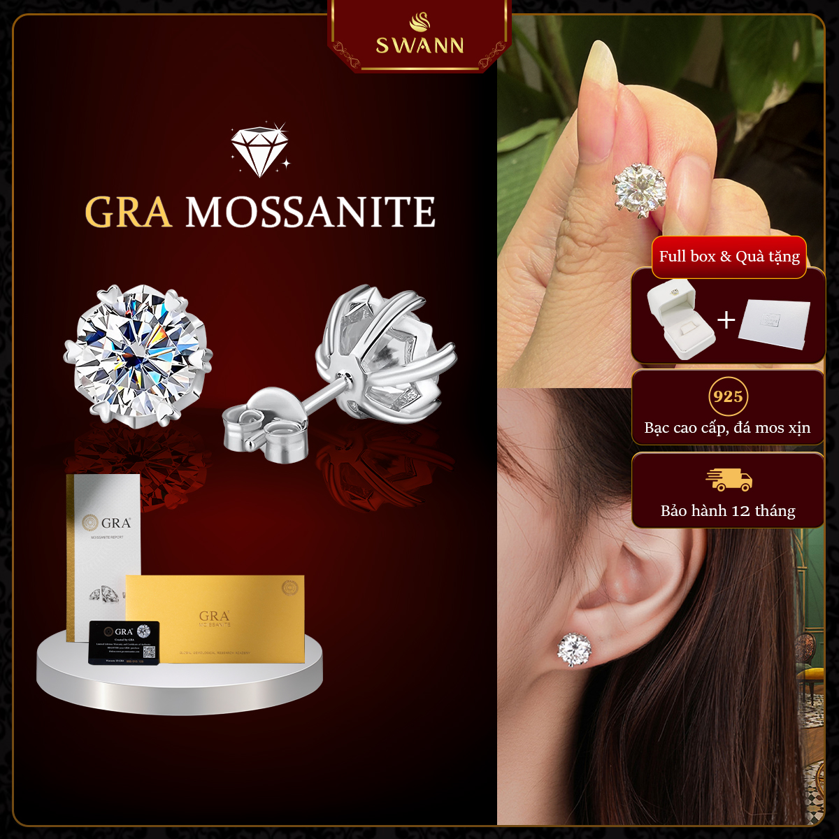 - Đá chủ: Moissanite cắt chuẩn, độ sáng vượt trội