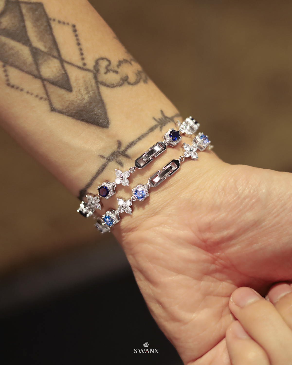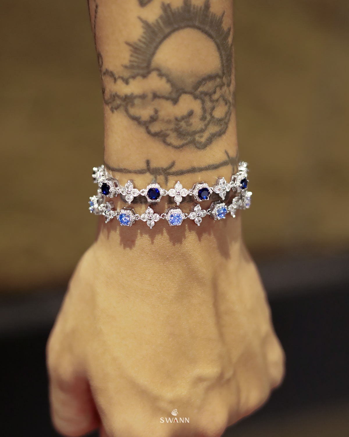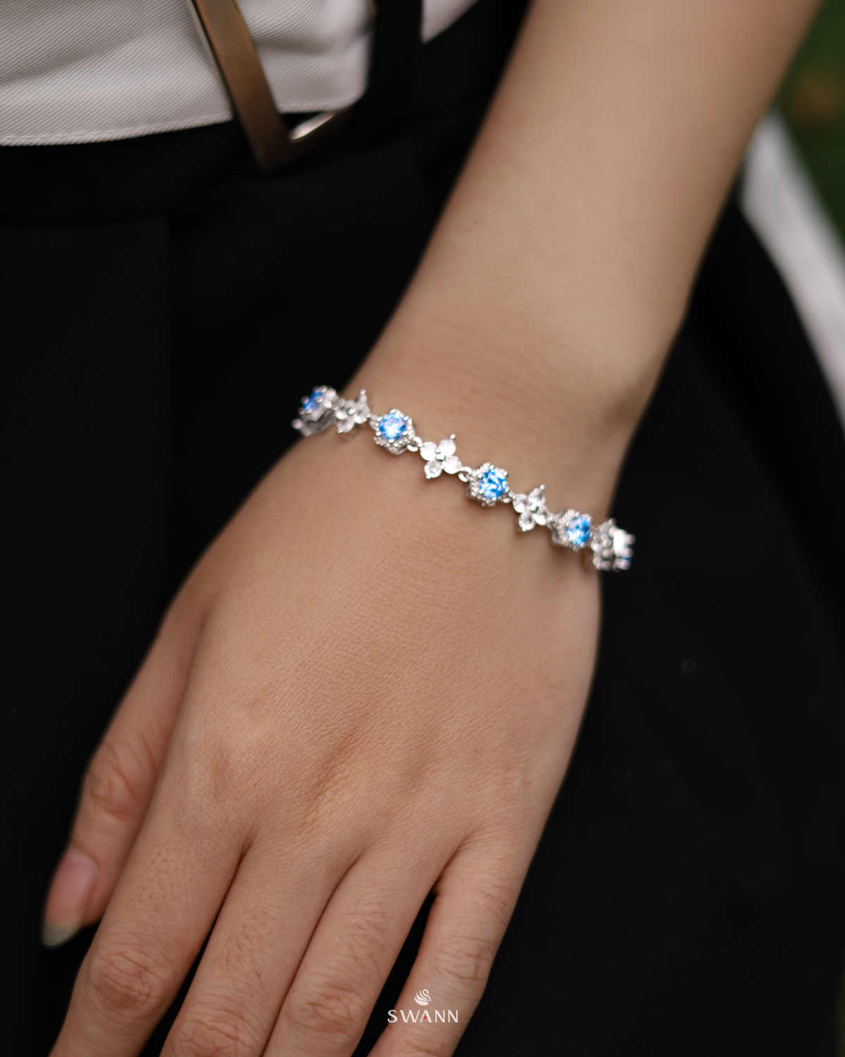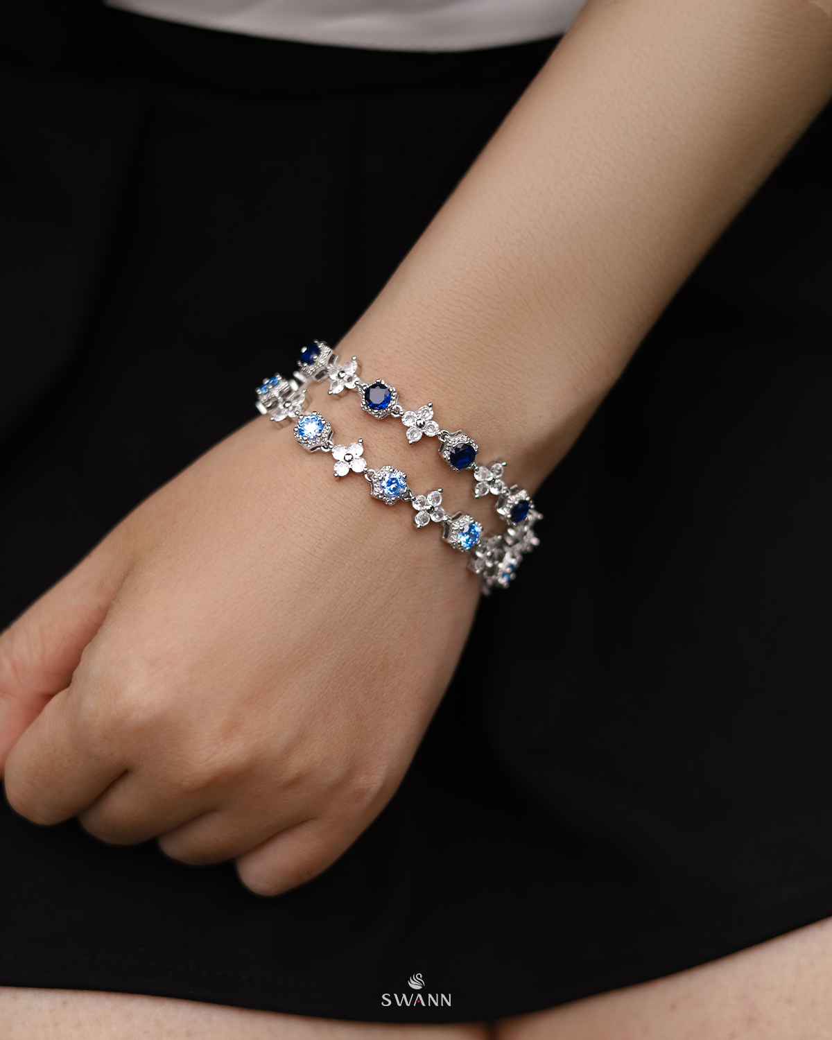 Người ta hay nói sắc xanh sapphire là màu của night energy – càng về đêm càng bật sáng, càng đeo càng cuốn. Thiết kế đính đá bling bling nhưng giữ độ gọn, đủ để flex nhẹ mà không cần quá phô trương. Điểm ăn tiền nằm ở phần khóa 2 chốt – dễ dàng adjust độ dài, fit tay kiểu nào cũng chơi được, từ ôm gọn đến loose nhẹ.
