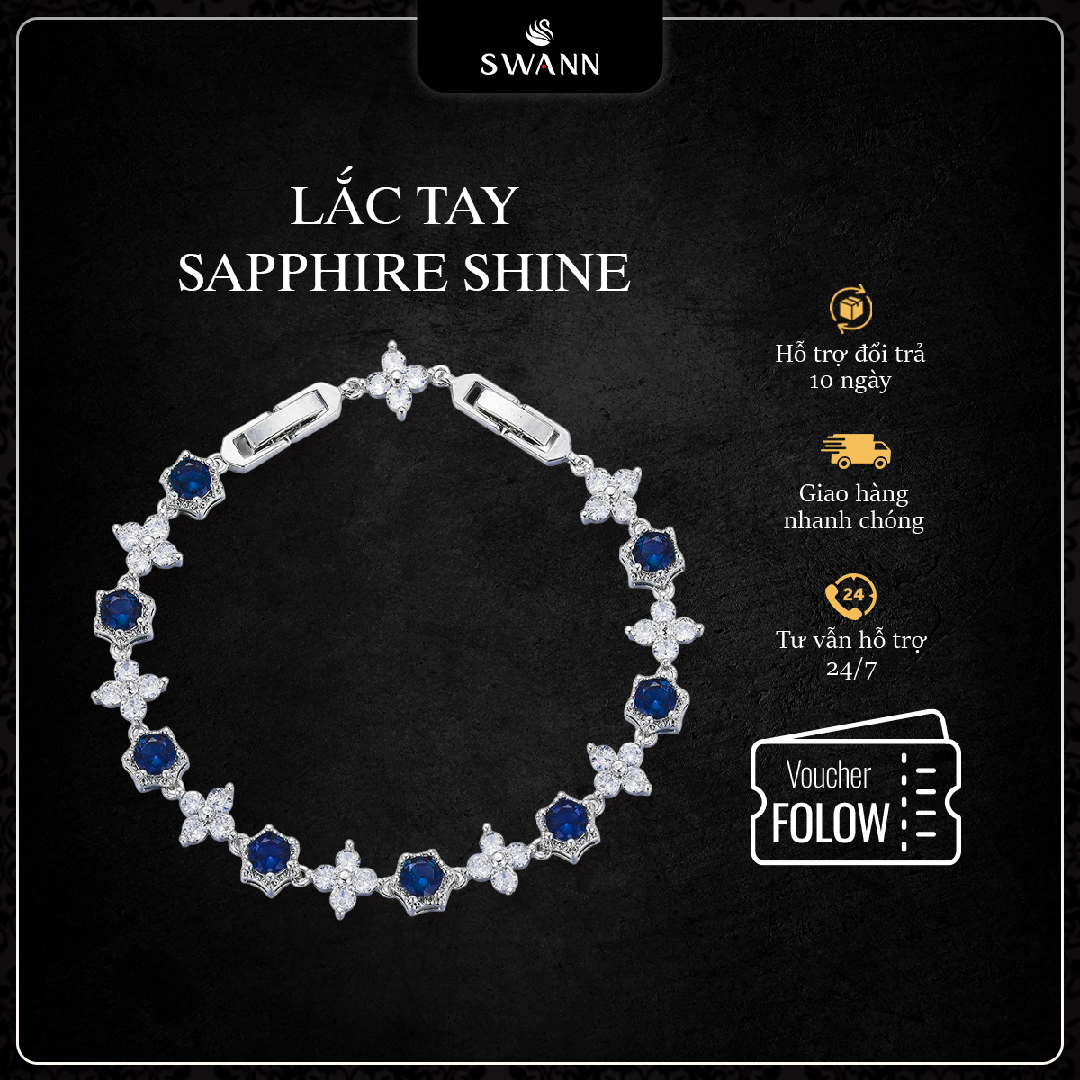 - Thay đá CZ, đá tổng hợp: Swann hỗ trợ thay miễn phí trong suốt thời hạn bảo hành 3 tháng kể từ ngày mua hàng.